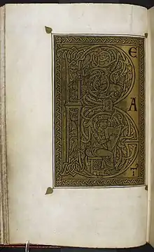 The Melisende Psalter (London, British Library, Egerton MS 1139) is an illuminated manuscript commissioned around 1135 in the crusader Kingdom of Jerusalem, probably by King Fulk for his wife Queen Melisende. It is a notable example of Crusader art, which resulted from a merging of the artistic styles of Roman Catholic Europe, the Eastern Orthodox Byzantine Empire and the art of the Armenian illuminated manuscript.