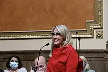 Her legislative service also includes being Chair of the Higher Education Appropriations, along with membership on the Public Education Standing, Transportation Standing, Criminal Justice and Law Enforcement Standing, Business and Labor Standing, and the Economic and Workforce Development Standing committees.[20] She serves as Chair of the Education and Mental Health Commission,[21] the Behavioral Crisis Response Commission, Chair of the Corrections and Higher Education Council, and Chair of the Utah Marriage Commission.[22] She also serves on the Utah Education Commission, and the Western Interstate Commission for Higher Education.[23]