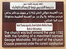 The Melkite Cathedral of Saint Thomas was built in 1752 and features a facade of Gothic arches. It is situated next to the offices of the Archeparchy and the residence of the Archeparch. During excavations underneath the cathedral remains of the original church from the 12th century were discovered and preserved.[13]