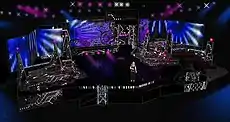 The logo for the Contest, the now-familiar five spotlights, has not been altered since its interception in 2002, and remained in use for the 2009 Contest. The first details of the stage for this year's contest were released on 29 January 2009, a week before the first heat in Gothenburg. The first plans of the stage were made during the summer of 2008 and was, for the third time, designed by Viktor Brattström, with the intention to provide a feeling of endlessness: "The audience will get the feeling of not knowing where the stage starts or ends, not knowing what's coming up around the corner".[9][10]