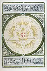 A print depicting the layout (floor) and some of the reliefs