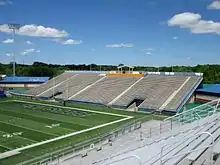 In 1954, a second permanent grandstand was built opposite the original one using the same design. This raised the stadium's capacity to approximately 12,000.[9] Additional auxiliary bleachers would be added on either side of the grandstands and in the end zones over the years, finally bringing capacity to 20,000 by 1965. For the 1965 season, the 20,000-seat capacity made the stadium the largest in the Mid-American Conference until the opening of Doyt Perry Stadium at Bowling Green State University the following year.[10]