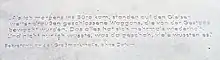 The traditions of these events are permanently inscribed as quotations on the floor and walls, in the basement of the former Grossmarkthalle and in the outside areas of the European Central Bank. For visitors to the ECB and the adjacent, publicly accessible area to the east, the quotations not only topographically mark the site of the mass crime as "inscriptions" on paths and walls, but in their arrangement follow the chronological sequence of a deportation: from the invitation to arrive at the collection point, to the departure of the trains to the collection camps in the east. Between which there were often only two to three days of immeasurable suffering for the people affected. However, the literal evidence also addresses indirect events and emotions, such as suicides in the temporal context of the deportations, reactions of the urban population or the reflection of crime in Frankfurt.[2]