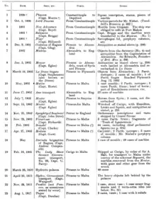 Commanded by Captain William Eglen, it left Piraeus on 18 September 1802 with seventeen cases full of antiquities, including:[1][3][5]