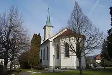 From the 2000 census, 1,673 or 30.4% were Roman Catholic, while 2,181 or 39.6% belonged to the Swiss Reformed Church. Of the rest of the population, there were 5 individuals (or about 0.09% of the population) who belonged to the Christian Catholic faith and a small congregation of Moravian Brethren.[12]