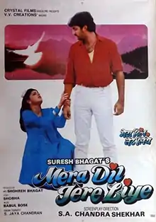 Mera Dil Tere Liye (transl. My heart is for you) is a 1992 Indian Hindi-language film, directed by S. A. Chandrasekhar and produced by Mrs. Shohreh Bhagat. The film stars Gopi Bhalla, Dinesh, Aruna Irani and Shily Kapoor.[1] The film was a remake of the Tamil film Nanbargal.[2]