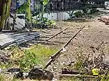 The station has three active lines. Line 1 is used as shunting line for locomotives, with line 2 used for loading and unloading of passengers and line 3 was used for passenger cars storage or stabling in the past. While still active, currently line 3 is mostly unused. There is also the inactive line 4, with its connection to the main line severed and mostly buried with asphalt. There is an abandoned hopper wagon in former line 4.
