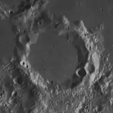 Mercator is a lunar impact crater that is located on the southwestern edge of Mare Nubium, in the southwest part of the Moon. It was named after 16th-century Southern Dutch cartographer Gerardus Mercator.[1] It is located to the southeast of the crater Campanus, and the two are separated by a narrow, winding valley.