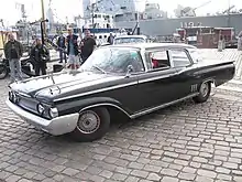 For 1964, the Montclair nameplate was revived, again as the mid-level full-size Mercury sedan (positioned between the Monterey and a revived Park Lane).[28] The 1964 Mercurys underwent a minor facelift, as a convex grille replaced the previous concave design, an appearance shared with the 1961 Thunderbird and the 1961 Lincoln Continental. As with the previous generation, the Montclair was offered in four-door sedan and two-door and four-door hardtop designs.[29] On hardtops, two rooflines were offered, the notchback "Breezeway" configuration (with a reverse-slant retractable rear window) or a notchback "Marauder" configuration; all four-door Montclair pillared sedans had the Breezeway roof.[29]