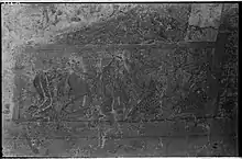 The excavation covered the entire lost city of Meroë.[3] It took two excavations of the area to come across the head.[3] Among other structures, the excavation team uncovered the ruins of a temple of Ammon, the ornately decorated temple in which the head was buried, and two large buildings speculated to be palaces.[3]