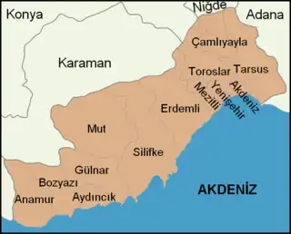 4. İçel: Mersin- Tarsus- Çamlıyayla- Erdemli- Silifke- Aydıncık- Bozyazı- Anamur- Gülnar- Mut (Kültür, Turizm ve Tanıtım yayınları, 1992), p. 7.