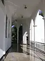 The interior of the mosque is more beautiful than the outside. There is a spacious main prayer hall which covers 400m² of the total built area of 600 m2. In the main prayer hall, there is a beautiful Mihrab built into the back wall of the mosque. The beautifully decorated Mihrab of the mosque indicates the direction to the Holy Mosque of Mecca in Saudi Arabia, where all Muslims are required to face when they perform their prayers.[1]