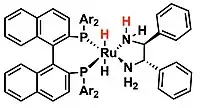 - ↑ Ohkuma, Takeshi; Utsumi, Noriyuki; Tsutsumi, Kunihiko; Murata, Kunihiko; Sandoval, Christian; Noyori, Ryoji (2006-07-01). "The Hydrogenation/Transfer Hydrogenation Network: Asymmetric Hydrogenation of Ketones with Chiral η6-Arene/N-Tosylethylenediamine−Ruthenium(II) Catalysts". Journal of the American Chemical Society. 128 (27): 8724–8725. doi:10.1021/ja0620989. ISSN 0002-7863. PMID 16819854.