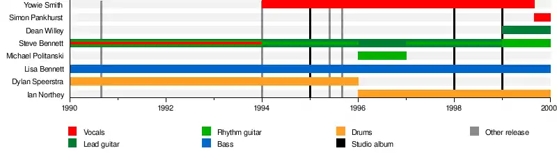 - Steve "Yak" Bennett – guitar (1990–1999), rhythm guitar (1999)