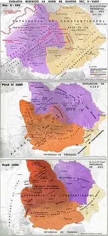 The Metropolis of Moldavia was set up in 1386, and recognized in 1401, by the Ecumenical Patriarchate of Constantinople. It then united, in 1872, with the Metropolis of Ungro-Wallachia to form the Romanian Orthodox Church.[1]