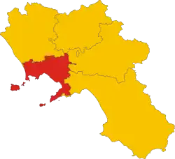 The Metropolitan City of Naples (Italian: città metropolitana di Napoli) is a metropolitan city in the Campania region of Italy. Its capital is the city of Naples. The province was established on 1 January 2015 and contains 92 comuni (SG: comune).[3][4] It was first created by the reform of local authorities (Law 142/1990) and established by Law 56/2014, thus replacing the province of Naples in 2015.