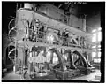 In 1894, the station put its third water pump into operation: a steam-powered water pump designed by Erasmus Darwin Leavitt.[3] The Leavitt-Riedler Pumping Engine, as it was later called, was promoted as "the most efficient pumping engine in the world" it was first unveiled, and remained in operation through 1928. In the 20th century it was declared a historic mechanical engineering landmark by the American Society of Mechanical Engineers.[8] It was fully restored by the museum and is the centerpiece of its main floor.