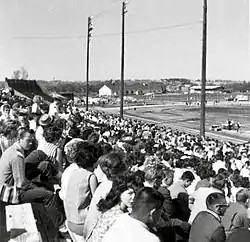 The land for Mewata Park was a gift from the Government of Canada.[1] The Mewata Stadium opened in 1906, and by 1919 (if not earlier) had bleachers with a seating capacity of 10,000.[1]