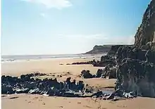 Mewslade Bay is a small sandy beach facing SSW in the west of the Gower Peninsula, Wales. It lies south of Middleton and southwest of Pitton, from which footpaths lead to the beach.[1]