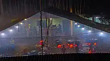 Mezban (Bengali: মেজবান), locally known as Mejjan (Chittagonian: মেজ্জান) is a popular social festival held in the Chittagong region of Bangladesh.[1] Historically Mezban is a traditional regional feast that serves the famous Mezbani meal consisting of steamed white rice and hot beef, usually along with other dishes like 'chonar daal' or curry of mung bean and beef fat chunks, 'nolar kanzi' or beef bone marrow soup, and the kala bhuna or dried beef with onions. The feast is held on occasions such as death anniversary, birth anniversary, launching of a new business, the birth of a child, marriage, aqiqah and circumcision, and ear piercing of girls among others.[1][2] The invitation of the Mezban ceremony generally remains open for all and various people to different places and neighborhoods convey the invitation for the feast. The invitation cards are printed and distributed among the guests only in urban areas. Usually, the consumption of food at Mezbani takes place from morning to afternoon.[1]