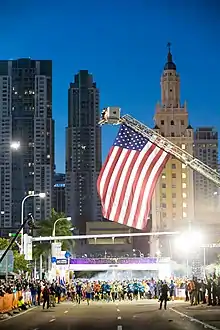 - ↑ The half marathon is started concurrently, while the wheelchair division begins 5–10 minutes before the footrace.