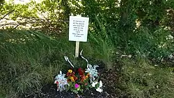 Near the anniversaries of the event, a temporary commemorative plaque and flowers are placed at the location of the killings.