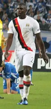 At the start of the 2011–12 season, Richards set up the two goals in the first two league matches to give Manchester City a perfect start to the season.[89] By the end of August, he signed a contract extension with the club, keeping him until 2015.[90] Richards made his UEFA Champions League debut, starting the whole game, in a 2–0 loss against Bayern Munich, in what turned out to be his only appearance in the competition.[91] Since the start of the 2011–12 season, he established himself in the starting 11, playing in the right-back position.[92] But Richards found himself rotated under Mancini's management, which saw him dropped from the first team at times.[93] Richards then set up two goals in two matches between 15 October 2011 and 23 October 2011, including one in a 6–1 win over rivals, Manchester United.[94] This was followed up by making his 200th appearance for Manchester City, in a 3–1 win over Wolverhampton Wanderers on 29 October 2011.[95] It was not until on 19 November 2011 when he scored his first goal of the season, followed up by setting up the club's third goal of the game, in a 3–1 win over Newcastle United.[96] After the match, his performance was praised by teammate, Joleon Lescott.[97] Between December and February, Richards found himself out of the first team on three occasions, due to injuries.[98] He captained the side on three occasions as well: twice against Liverpool in both legs in the League Cup and once in the league against Fulham.[99] Towards the end of the 2011–12 season, Richards’ playing time was reduced and found himself placed on the substitute bench, due to the hamstring injury he sustained.[100] Despite this, Manchester City won the Premier League in 2011–12, and Richards was nominated for the club's Player of the Year award.[101] In addition to making thirty–seven appearances and scoring once in all competitions, Richards finished the season with five assists – the most of any defender in the Premier League.[102]