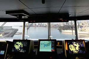 A view of Naha, Okinawa from the bridge of a Military Sealift Command cargo ship