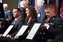 Sharon Landsberry during the Citizen Honors Ceremony at the Women in Military Service for America Memorial March 25, 2014, in Arlington, Va. Landsberry received the Citizen Service Before Self medal for her late husband Michael.
