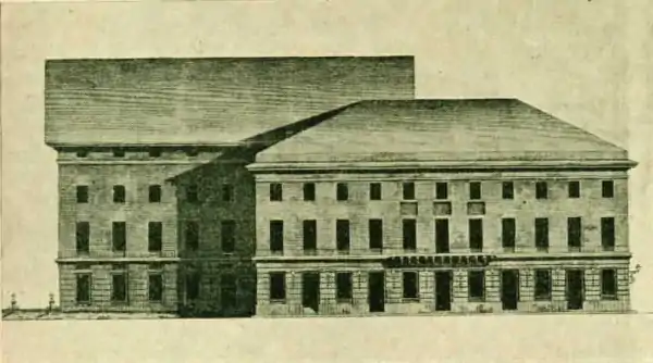 Urusov had been granted a ten-year licence for theatrical and other performances. For four years they enjoyed success in a wooden theatre at Znamenka Street, the Znamensky Theatre, before it burnt down in early 1780. Maddox then raised enough credit to buy his share of the company from Prince Urusov and employ architect Christian Rosberg the same year to construct a new brick and stone building that faced Petrovka Street. It thus became known as the Petrovsky Theatre. The theatre had four storeys of boxes and two spacious galleries. The pit had two series of benches, with enclosed seats at the sides. The sumptuously decorated boxes were available to let at from three hundred to a thousand roubles and upwards. Admittance to the pit was one rouble.