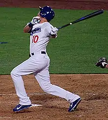 On August 31, 2013, he was traded to the Los Angeles Dodgers for minor league pitcher Rob Rasmussen.[30] In the last year of his contract, Young again waived his no-trade clause in order to join his hometown team for an expected playoff run.[31] Young was acquired to be a backup infielder and provide a veteran presence on the team.[32] Young made his Dodgers debut on September 1, 2013 pinch hitting in a game against the Colorado Rockies.[33] He appeared in 21 games for the Dodgers at a variety of positions and hit .314.