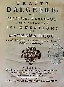 - Rolle, Michel (1690). Traité d'Algebre. E. Michallet, Paris.