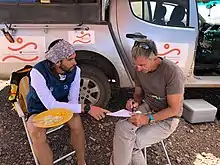 ![]() Graglia sitting with his doctor during a rest spot crossing the Atacama Desert | |