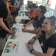 Creber frequently contributes to the brony community showing up to several brony conventions across the United States. She also has appeared internationally: BUCKcon at Manchester, UK, in 2013; GalaCon at Ludwigsburg, Germany, in 2015 and 2017; PonyCongress at Elbląg, Poland, in 2016;[5] and Project SeaPonyCon at Bangkok, Thailand, in 2017. She also had her own Internet radio show, Saturday Night Songs, on the defunct brony media network, "Everfree Network."[6]