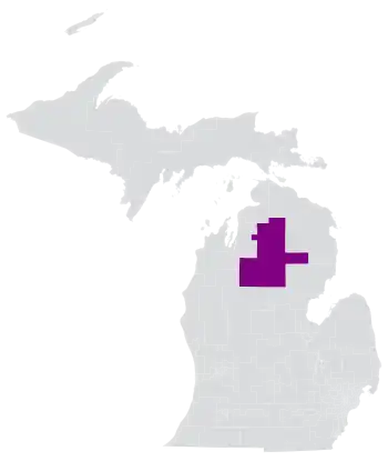 Michigan's 105th House of Representatives district (also referred to as Michigan's 105th House district) is a legislative district within the Michigan House of Representatives located in parts of Antrim, Kalkaska, and Oscoda counties, as well as all of Crawford, Missaukee, Otsego, and Roscommon counties.[3] The district was created in 1965, when the Michigan House of Representatives district naming scheme changed from a county-based system to a numerical one.[4]