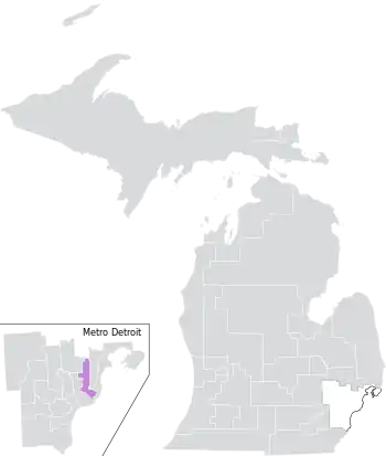 The district was split between Michigan's 9th and 10th congressional districts, and overlapped with the 24th, 25th, 30th, 31st, and 33rd districts of the Michigan House of Representatives.[8]