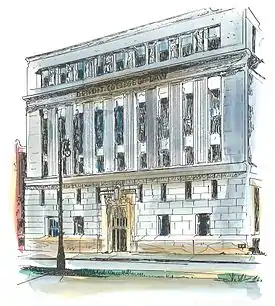 In 1937, the school broke ground and relocated to a new building at 130 East Elizabeth Street in Detroit, where it stayed until 1997. The Building was designed by architect George DeWitt Mason.[16] It had been located at the former Detroit College of Medicine building on St. Antoine Street from 1892 to 1913; and the Detroit "YMCA" building from 1913 to 1924; the ground on which the building stood was under a 99-year lease from the YMCA.[13][17] The last location of the Detroit College of Law in Downtown Detroit is commemorated by a plaque at Comerica Park, the home stadium of the Detroit Tigers baseball team, which now occupies the site.[18][19]