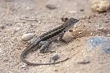 Microlophus barringtonensis or the Santa Fe lava lizard is a species of lava lizard or a population of Microlophus albemarlensis. It inhabits Santa Fe island in the Galápogos.[1] It is the only lava lizard on Santa Fe.[2] It is extremely common.[3]