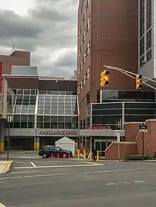 Robert Wood Johnson University Hospital, is a 610-bed[14] non-profit, public, research and academic teaching hospital located in New Brunswick, New Jersey providing tertiary care for the Central New Jersey and beyond. The medical center is a part of the RWJBarnabas Health System and the flagship hospital of the system. Robert Wood Johnson University Hospital is affiliated with the Robert Wood Johnson Medical School.[15] Robert Wood Johnson University Hospital also features a Level 1 Trauma Center, 1 of 4 in New Jersey.[2]
