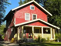 Most of the square house plans have a front gabled roofs with a full-width front porch.[2] Six of them were built before 1906 with most of them built between 1910-1911 and then 1914–1916. Three more houses were built in this style between 1917 and 1918, with the last being built in 1923. The second largest subtype has a side-gabled roof. The peak year for construction of this type was 1910 when seven were built. Otherwise, two to three houses were started each year between 1906 and 1919. The last four houses in this subtype were built between 1919 and 1925. There were only nine American foursquare houses with a hip roof built in the district. All but two were built before 1911. The other two were built in 1916.
