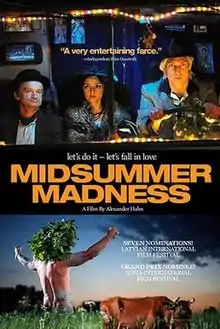 Midsummer Madness (Latvian: Jāņu nakts) is a 2007 film telling 6 different stories all taking place in Latvia during the Latvian national festivities of Jāņi. One of the stories shows a French woman (played by Maria de Medeiros) who brings the ashes of her late husband to Latvia, believing it to be the same country as Lithuania as she wants to spread her husband's ashes near the Hill of Crosses, which is in Lithuania. She eventually gets to the hill of crosses and this shows the only part of the film outside of Latvia.