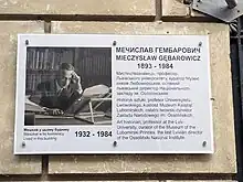 Commemorative plaque on Senatorska Street in Lviv, where Mieczysław Gębarowicz lived for 50 years