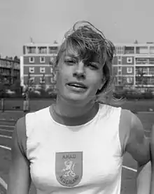 Mieke Sterk (Dutch: [ˈmikə stɛrk]; born 5 January 1946) is a retired track and field athlete and politician from the Netherlands. She was part of the Dutch 4×100 m relay team that finished in fourth place at the 1968 Summer Olympics. Individually, she failed to reach the final in the 200 m event. Two years later she won a bronze medal in the pentathlon at the 1970 Universiade and finished fifth in the 60 m hurdles at the European Indoor Championships.[1] Her personal bests were 11.6 seconds in the 100 m (1968) and 23.5 seconds in the 200 m (1973). After retiring from athletics she became involved in politics and between 1994 and 1998 was a member of the Tweede Kamer of the Dutch House of Representatives.[2]