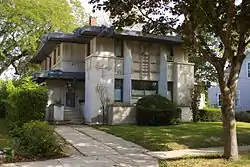 The Mier Wolf House is a historic building located in Mason City, Iowa, United States. Wolf was a prominent member of the local business community, operating a furniture store. Completed in 1909, this house is an early example of Prairie School architecture in Mason City. While its architect is unknown, it exhibits similarities to Frank Lloyd Wright's Mayan Period.[2] The house features geometric wall decorations, truncated, stylized piers, and paired sculpted shapes on the heavy fascia of the broad overhanging hip roof. It was listed on the National Register of Historic Places in 1980.[1]