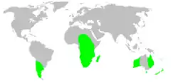 Migidae, also known as tree trapdoor spiders, is a family of spiders with about 100 species in eleven genera. They are small to large spiders with little to no hair and build burrows with a trapdoor.[1] Some species live in tree fern stems. They have a Gondwanan distribution, found almost exclusively on the Southern Hemisphere, occurring in South America, Africa, Madagascar, Australia, New Zealand and New Caledonia.[2][3]