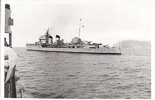 Shortly thereafter, on 5 March 1939, Spanish Republican Army Colonel Segismundo Casado launched an anticommunist coup and proclaimed a National Defence Council (Consejo Nacional de Defensa) in order to seek an armistice with the rebels and end the fratricidal war, a measure that Miguel Buiza favored. On the same day, the Nationalist Air Force bombed the harbour of Cartagena, the main base of the Republican Navy, sinking the destroyer Sanchez Barcaiztegui.[9] Following the bombing and the unrest in the city, where a rebellion was under way between adversaries and supporters of the continuation of the civil war,[10] Miguel Buiza decided to evacuate the seaworthy units of the Republican fleet. As soon as night fell, at least three cruisers, eight destroyers and two submarines left Cartagena harbor, speeding for the high seas.