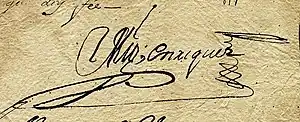 During this administration, a new treasurer was appointed to Puerto Rico, José del Pozo Oneto.[108] Enríquez had tried to win the functionary's favor when he arrived, providing slaves and several other gifts.[109] The first year of his incumbency was nominal, however, in early 1717 a series of conflicts between them became apparent.[110] According to a witness account, these differences began when Enríquez refused to loan 4,000 pieces of eight that Pozo wanted for personal matters.[110] Another factor could have been that the treasurer owned several stores in San Juan and was competing with the privateer in auctions.[111] Eventually, Pozo sided with another man that was battling to gain power, dean Martín Calderón.[112] Throughout Ribera's term, the elite class of San Juan launched a disparaging campaign, offended by the fact that a mulato had essentially become the most influential figure in Puerto Rico.[113] They would constantly address the Spanish Crown and accused him of smuggling, a notable concern during the era, or attempted to disregard his privateering skills.[114] The high class group that led the campaign was the Calderón family, to which the dean belonged.[115] It is likely that these differences materialized years before, but that these groups were simply waiting for the opportune moment to act on them.[116] Despite their status, the Calderón family was notorious for being involved with contraband and Ribera allied with them to pursue his own goals.[117] The family even employed the influence of one of his members to create divisions between Enríquez and the newly arrived bishop Pedro de la Concepción Urtiaga.[118] He was able to counter these accusations following the arrival of a prelate that favored him, neutralizing their influence.[118]