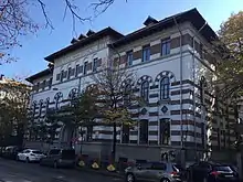 The cornerstone was laid in 1921 and work on the main building was largely completed by 1928. It was used as a field hospital in World War II. In the early years of the communist regime, the 1937 auditorium burned down during a spontaneous student protest,[1] which led to four students (including Sorin Bottez) being condemned to harsh prison sentences.[2] The chapel on the upper floor became and remains a gymnastics room, although the high windows retain cross shapes. Eventually, the school was again moved, while the building housed a workers’ school. It returned as School nr. 13, and was again named after Michael the Brave in 1969. It was declared a national college in 1996. In 2011, by which time there were 1,200 students, the building underwent a thorough restoration.[1]