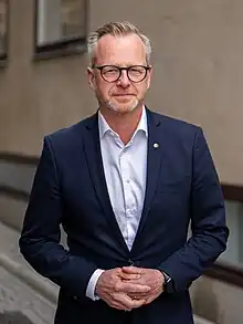Lars Mikael Damberg (ⓘ born 13 October 1971) is a Swedish politician of the Social Democratic Party. He served as Minister for Finance from 2021 to 2022. He previously served as Minister for Enterprise from October 2014 to January 2019 and as minister for home affairs from January 2019 to November 2021.
