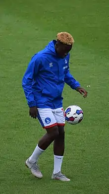 ![]() Ndjoli warming up for Hartlepool United in 2022 | |||